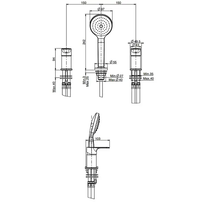 Fima Carlo Frattini Serie 22 Смеситель на борт ванны, на 3 отв., с ручным душем, цвет: чёрный матовый