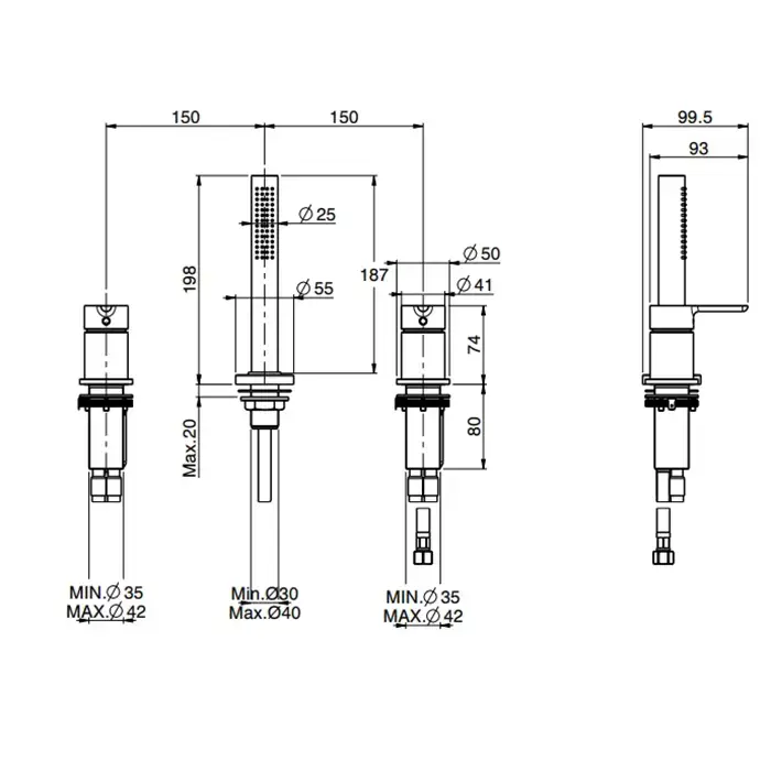 Fima Carlo Frattini Snap Смеситель на борт ванны, на 3 отв., с ручным душем, цвет: хром