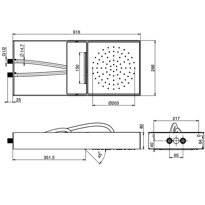 Fima Carlo Frattini Soffioni Верхний душ 49х40см., потолочный 15см., Cloud, цвет: черный матовый/нержавеющая сталь