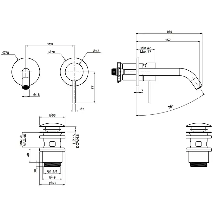 Fima Carlo Frattini Spillo Steel Cмеситель для раковины, встраиваемый, излив: 15.7см., цвет: нержавеюшая сталь