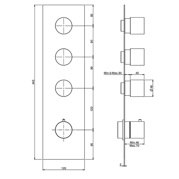 FIMA|Carlo Frattini Spillo Steel Смеситель для душа встроенный, термостатический, 3 запорных вентиля, внешняя часть, цвет INOX