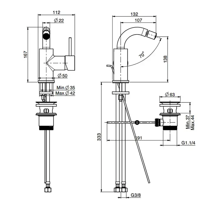 Fima Carlo Frattini Spillo Up Смеситель для биде, на 1 отв., с донным клапаном, цвет: хром