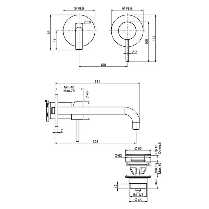 Fima Carlo Frattini Spillo Up Cмеситель для раковины, встраиваемый, излив: см., цвет: чёрный матовый
