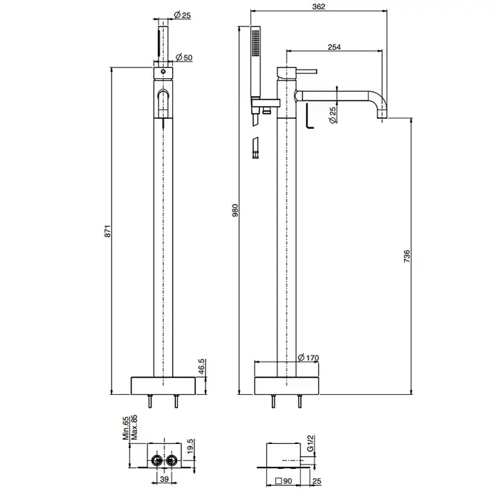 Fima Carlo Frattini Spillo Up Смеситель для ванны, напольный, с ручным душем, цвет: хром