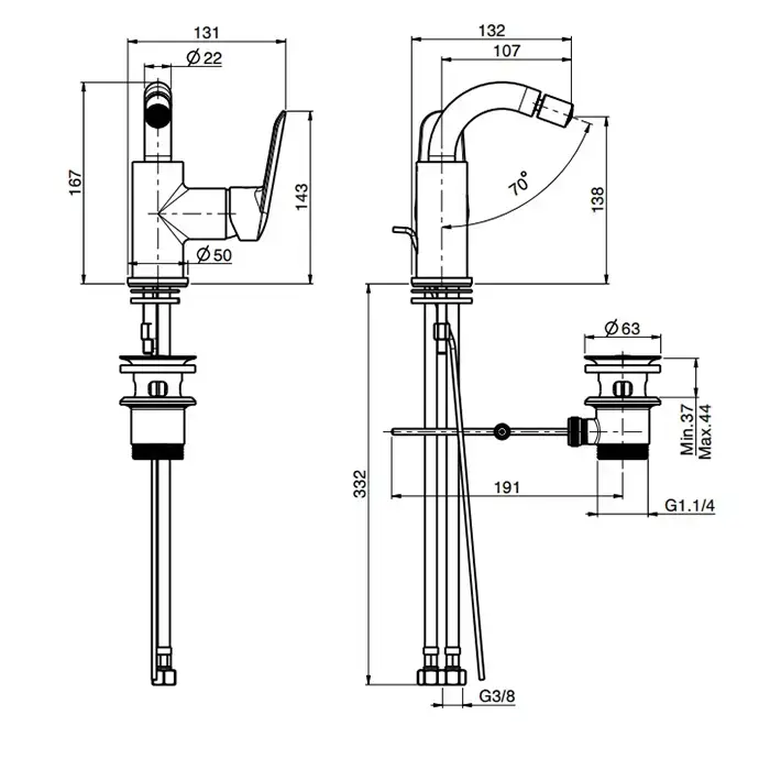 Fima Carlo Frattini Spot Смеситель для биде, на 1 отв., с донным клапано, цвет: черный матовый