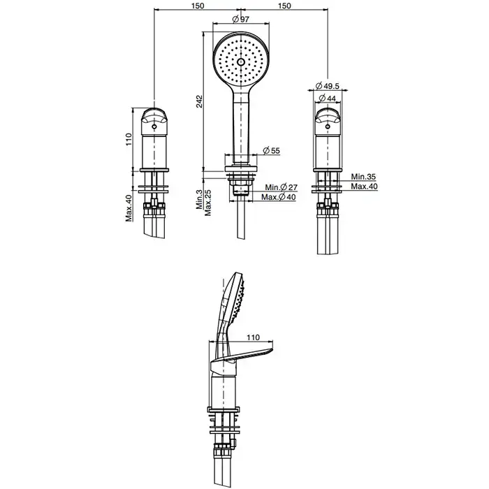 Fima Carlo Frattini Spot Смеситель на борт ванны, на 3 отв., с ручным душем, цвет: черный матовый