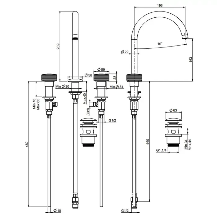 Carlo Frattini Texture Collection Смеситель для раковины, на 3 отверстия, донный клапан click-clack, цвет: золото