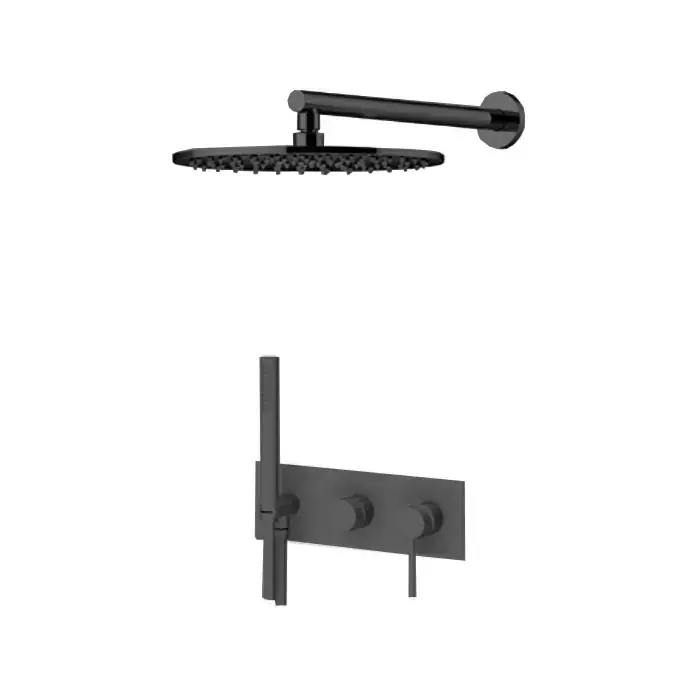GATTONI CIRCLE ONE Комплект для ванны со смесителем двстроенным на 2 вых, ручной лейкой и верхним душем 250мм, цвет NERO OPACO