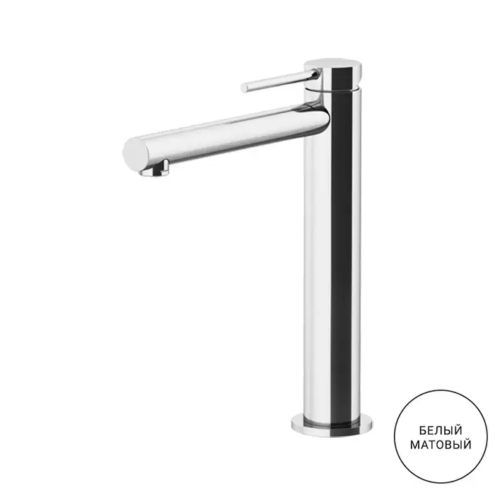 Gattoni Circle One Смеситель для раковины высокий 227 мм, на 1 отв., излив 160 мм, с донным клапаном, цвет: белый матовый