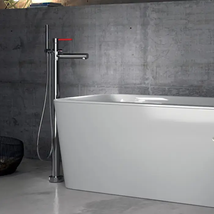 GATTONI CIRCLE ONE Смеситель для ванны напольный 1090 мм, с ручной лейкой, излив 224 мм, цвет хром