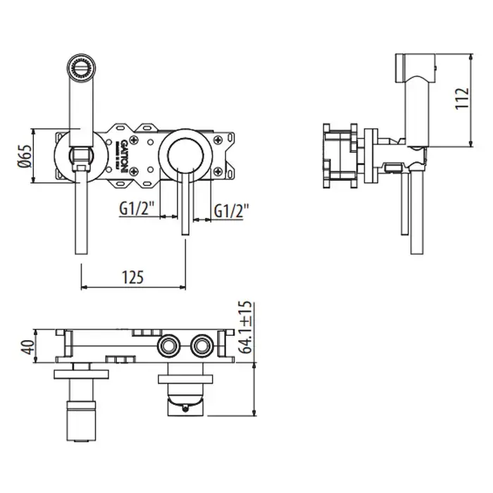 Gattoni Circle Two Смеситель встраиваемый для ванны на 4 отв, с ручной лейкой, цвет: хром