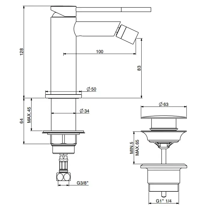 GATTONI CIRCLE TWO Смеситель для биде на 1 отверстие, с донным клапаном, цвет хром