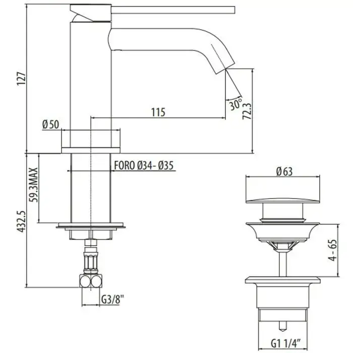 Gattoni Circle Two Смеситель для раковины на 1 отверстие, излив 115 мм, с донным клапаном, цвет: хром