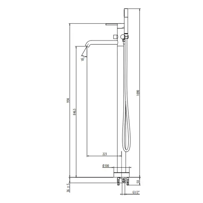 Gattoni Circle Two Смеситель для ванны напольный 994 мм, цвет: хром
