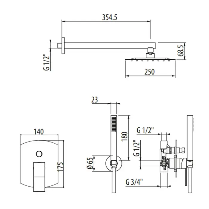 Gattoni ELY Комплект для душа со смесителем, верхним душем 250х250мм и ручной лейкой, цвет: хром