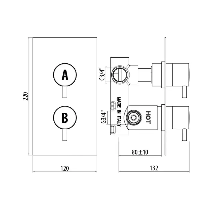 GATTONI FLAT Termostatici смеситель для душа 2 рычага на 2 выхода, цвет хром