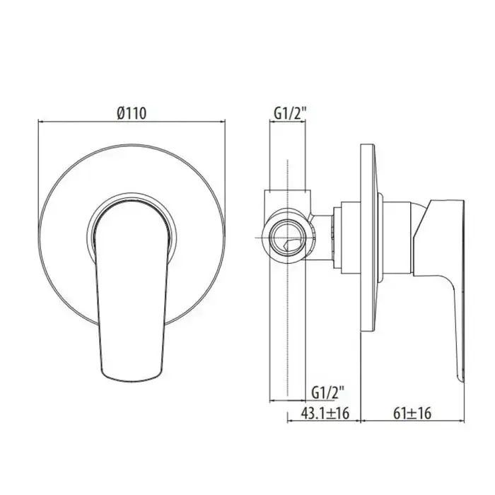 Gattoni H2omix3000 Встраиваемый смеситель для душа, укомплектован внутренней частью, цвет хром