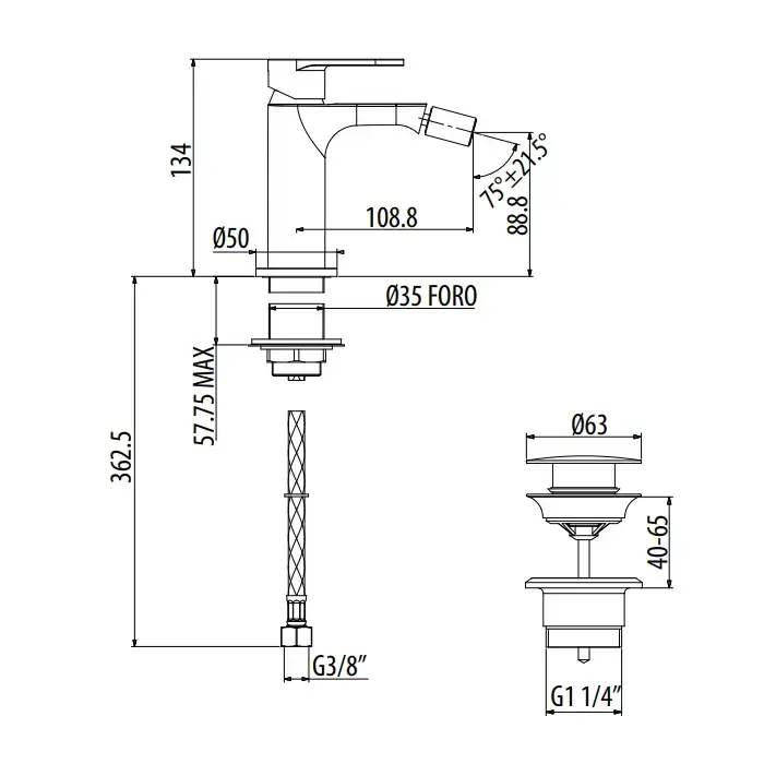 Gattoni H2Omix7000 Смеситель для биде с донным клапаном, излив 108,8 мм цвет Nero Opaco