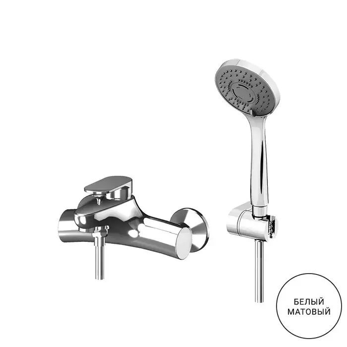 Gattoni H2Omix7000 Смеситель для ванны настенный однорычажный, с ручной лейкой и держателем, цвет: белый матовый