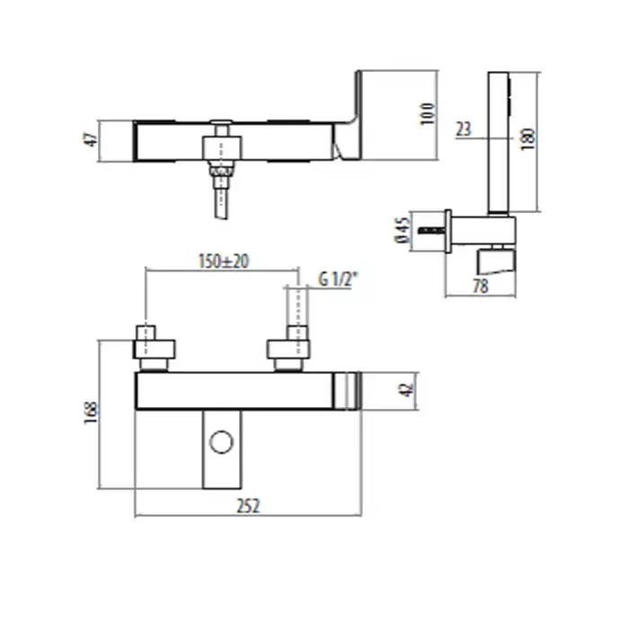 GATTONI Kubik Смеситель для ванны/душа встраиваемый с ручной лейкой, цвет хром