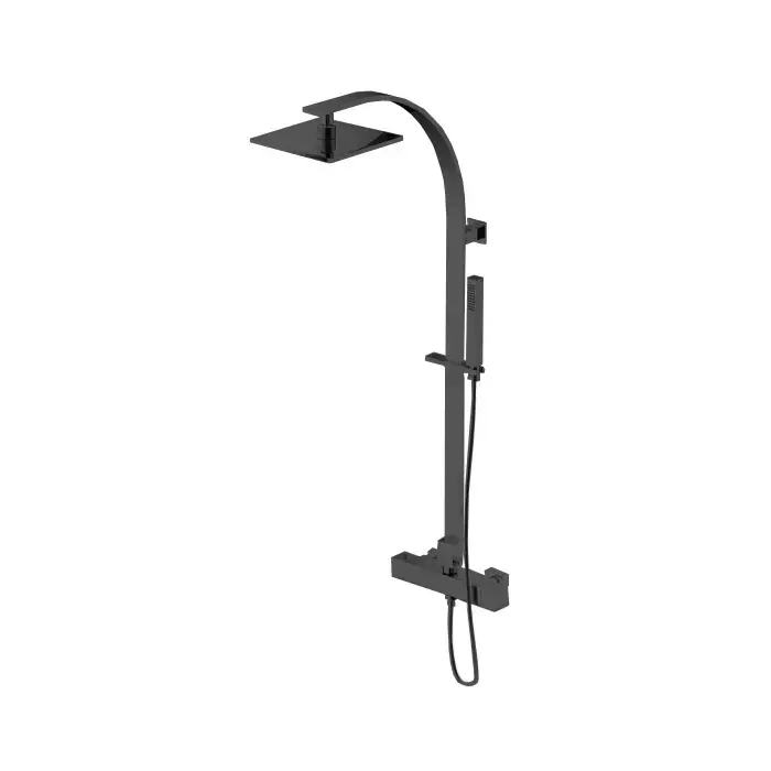 Gattoni Kubik Душевая стойка, включающая ручной душ, термостат, верхнюю лейку диаметром 20см, цвет: черный матовый