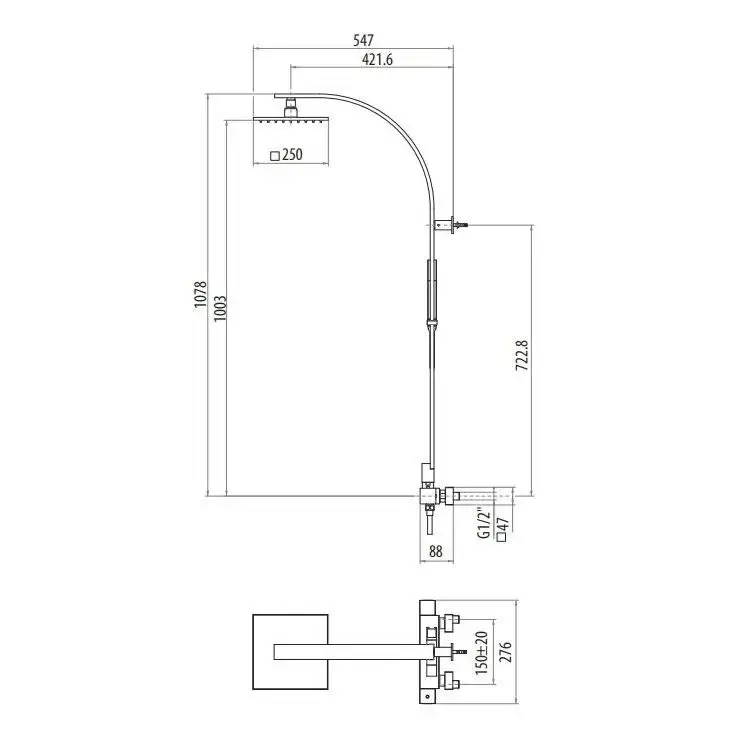 Gattoni PD Душевая стойка, включающая ручной душ, термостат, верхнюю лейку диаметром 200мм, цвет: хром