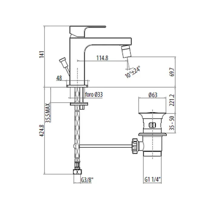GATTONI Kubik Смеситель для биде с донным клапаном, цвет хром