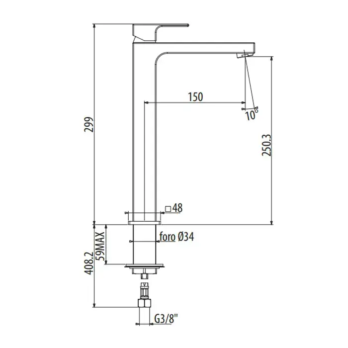 Gattoni Kubik Смеситель для раковины высокий 299 мм, излив 150 мм, цвет: хром