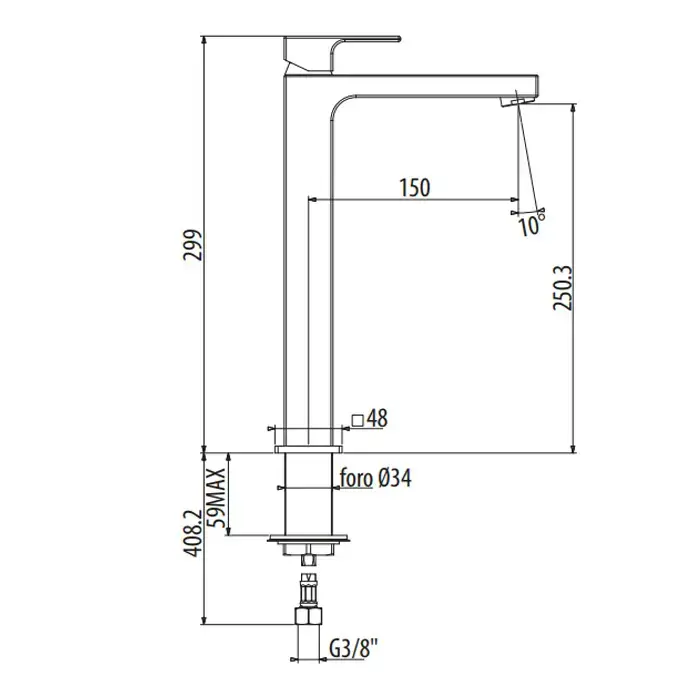 Gattoni Kubik Смеситель для раковины высокий 299 мм, излив 150 мм, цвет: хром