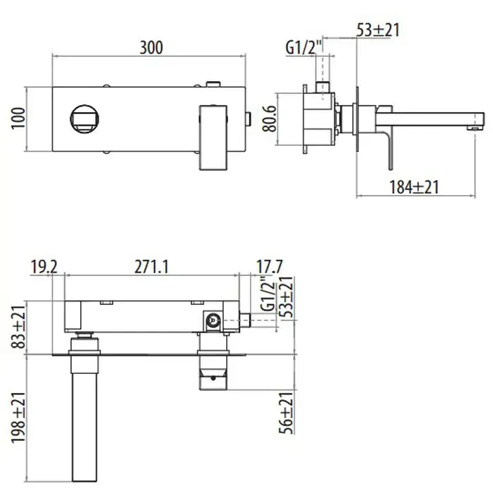 GATTONI KUBIC Смеситель для раковины встраиваемый, излив 203мм, с внутренней частью, цвет: хром