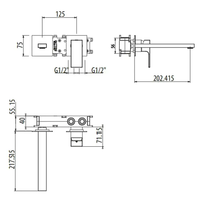 GATTONI Kubik Смеситель встраиваемый на 2 отв, с внутренней частью G-BOX,излив 202 мм, цвет хром