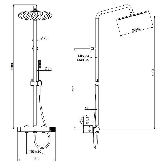 GATTONI MD Душевая стойка, верхний душ Ø300 мм., ручной душ, шланг, цвет хром