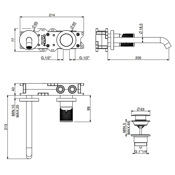 Gattoni MD Смеситель для раковины на 2 отверстия, настенный монтаж, ручка RONCO, в комплекте со скрытой частью, цвет: хром