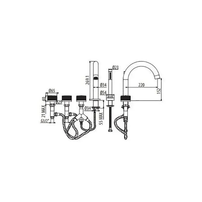 Gattoni MD Смеситель для установки на борт ванны на 5 отверстий, с ручным душем, цвет: хром