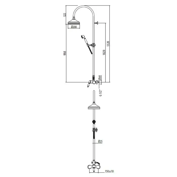 Gattoni Orta Душевая стойка: ручной душ,смеситель однорычажный, верхний душ: 200мм с "антикальцием", цвет бронза (Снято с пр-ва)