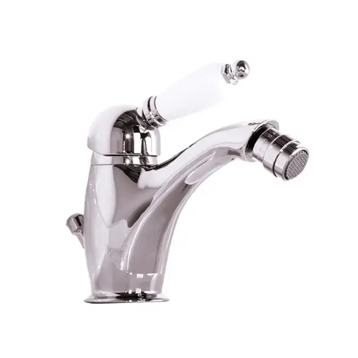 Gattoni Orta Смеситель для биде с низким изливом, с белой ручкой, с донным клапаном, цвет хром (Заказ по запросу!)