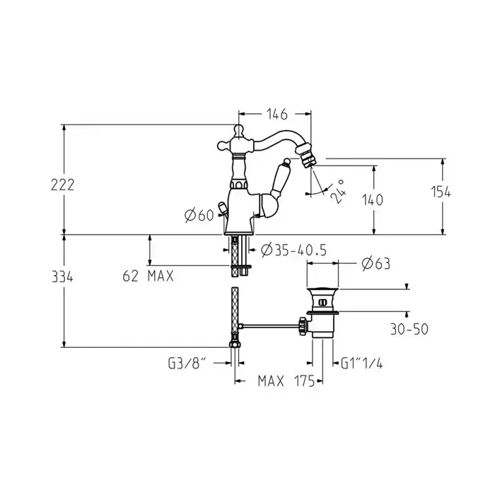 Gattoni Orta Смеситель для биде с высоким изливом, с белой ручкой, с донным клапаном, цвет бронза (дизайн 2018г) (Снято с пр-ва)