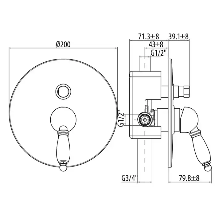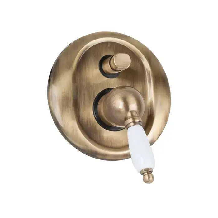 Gattoni Orta Встраиваемый смеситель для ванны/душа на 2 выхода, c белой ручкой, (GBox в комплекте) диаметр декоративной части 145 мм,, цвет: бронза