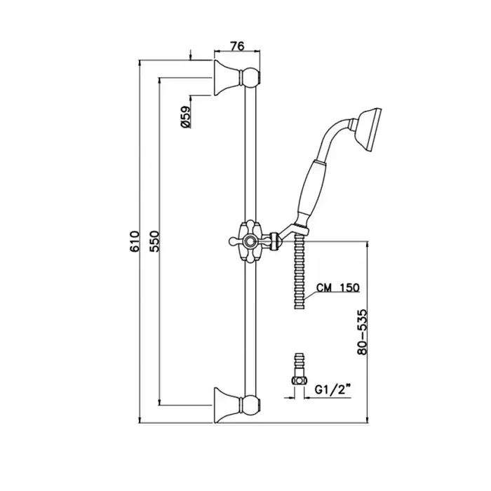 Gattoni PD Душевая стойка 60см с лейкой CLASSIC и шлангом, цвет DARK NICKEL