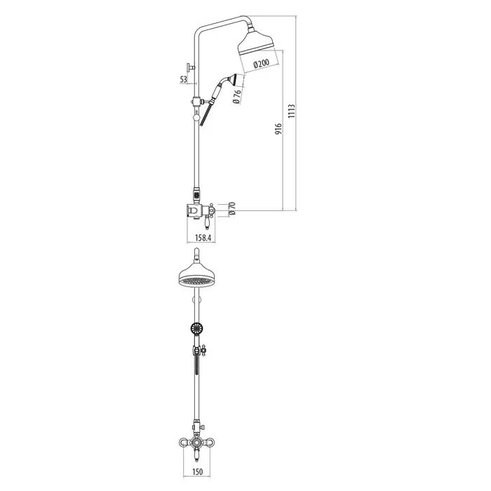 Gattoni PD Душевая колонна,включающая ручной душ,смеситель с термостатом,верхнюю лейку диаметром 200мм с "антикальцием", цвет хром (монтаж на трубки!)