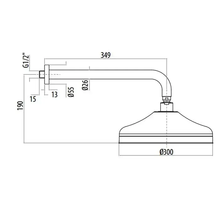 Gattoni PD Верхний душ классика кругл. D=300mm с настенным держателем 349mm, цвет хром (Заказ по запросу!)