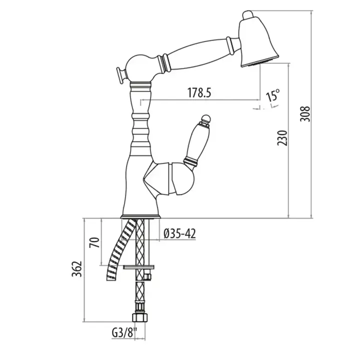 Gattoni Retro Смеситель для мойки с выдвижным "ручным душем",цвет золото