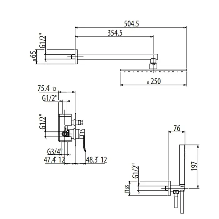 Gattoni Soffio Душевой комплект, смеситель встроеный с внутр частью, ручная лейка. душевая головка 250мм.цвет: хром