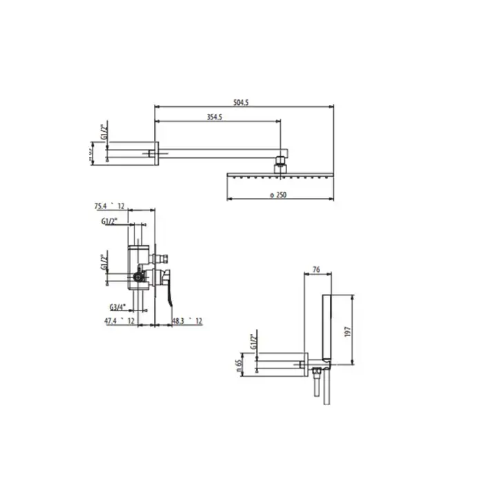Gattoni Soffio Душевой комплект, смеситель встроеный с внутр частью, ручная лейка. душевая головка 250мм.цвет: хром