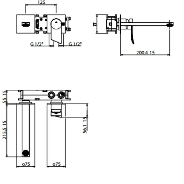 Gattoni Soffio Смеситель для раковины встроенный с внутренней частью. на 2 выхода. излим 200мм. цвет: хром