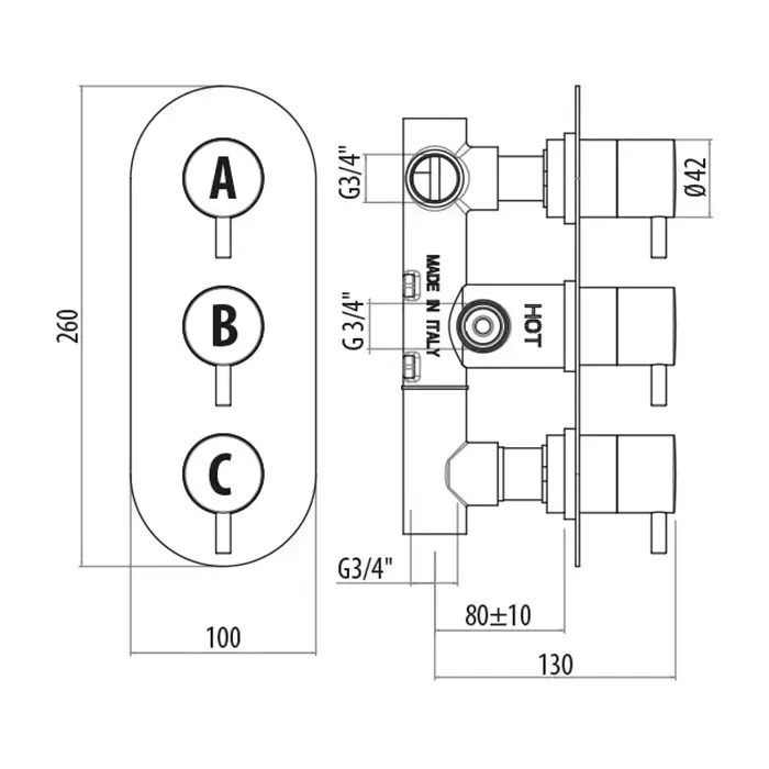 Gattoni Termostatici Термостатический встраиваемый смеситель для душа на 2 источника, цвет хром