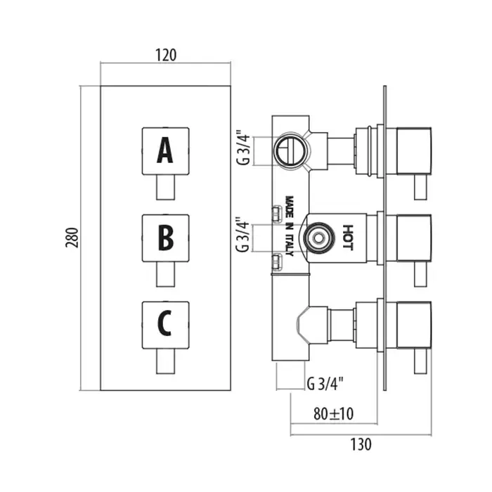 Gattoni Termostatici Термостатический встраиваемый смеситель для душа 3 рычага на 2 источника, цвет хром
