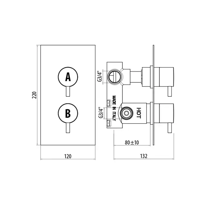 GATTONI Termostatici Термостатический встраиваемый смеситель для душа 2 рычага на 1 источник, цвет хром