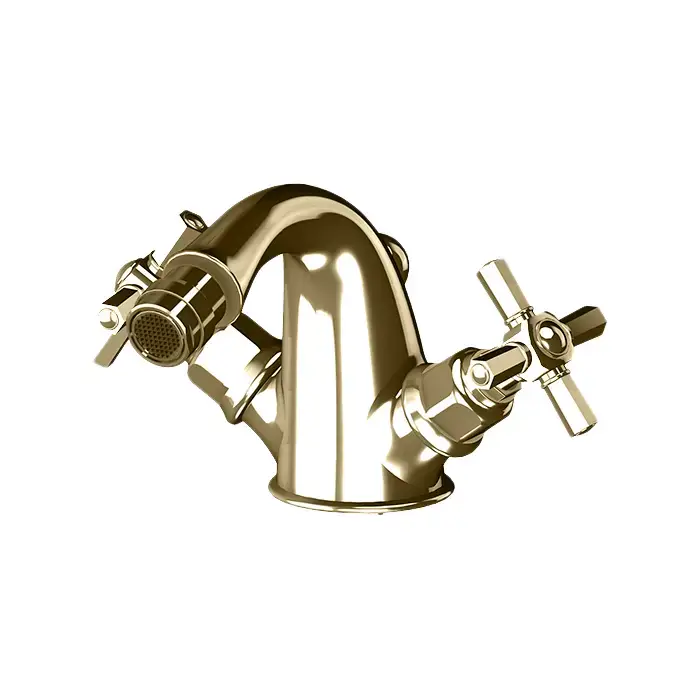 GATTONI TRD Смеситель для биде на 1 отверстие, ручки Paris, высота излива 81,3 мм., с донным клапаном, цвет золото 24К