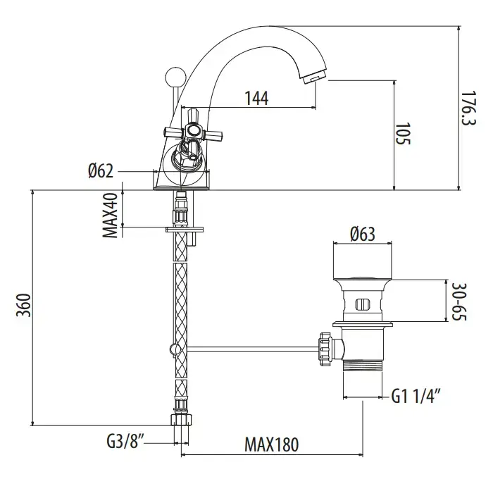 Gattoni TRD Смеситель для раковины, 3 отв., ручки Paris, цвет: хром
